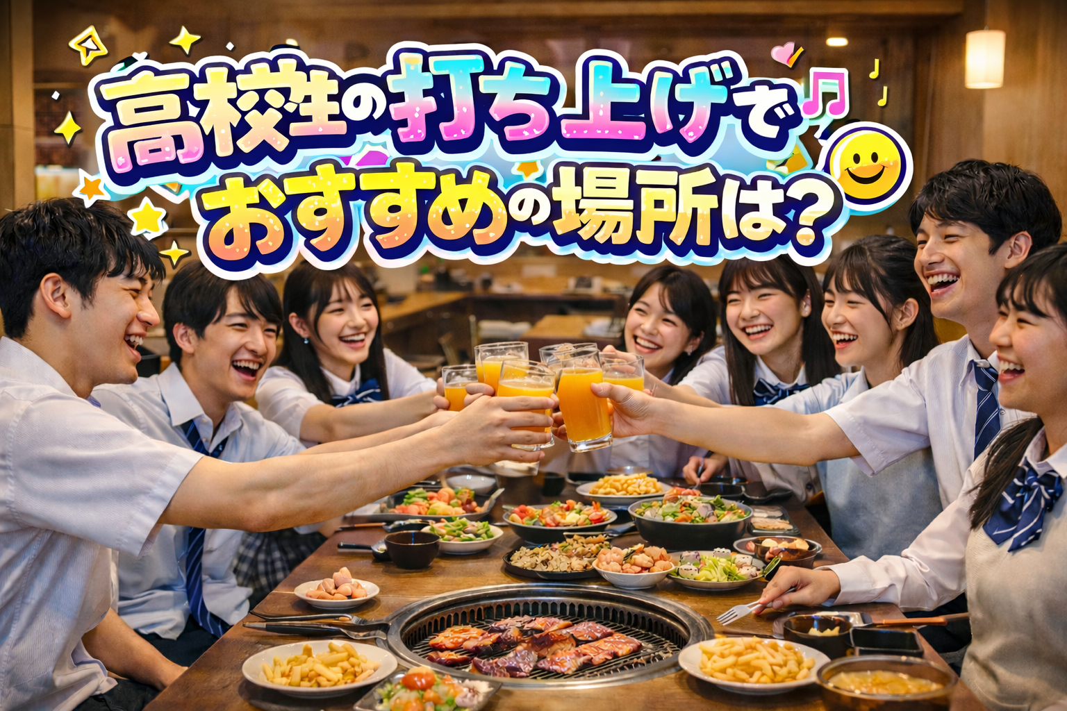 この記事では、高校生に人気の打ち上げスポット10選に加え、カラオケ・レストラン・食べ放題など打ち上げに外せない具体的なおすすめチェーン店、さらに計画するうえで押さえておきたい注意点をご紹介します。みんなが笑顔で楽しめる打ち上げを叶えるために、ぜひ最後までチェックしてください。